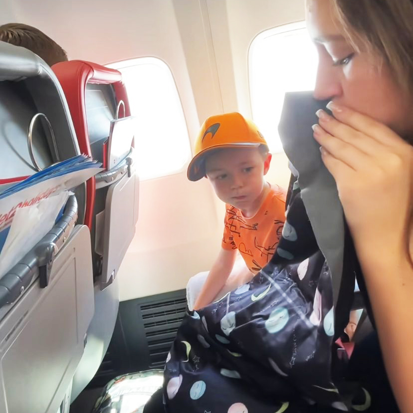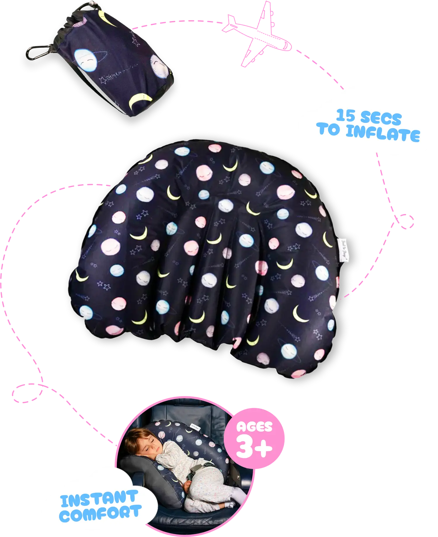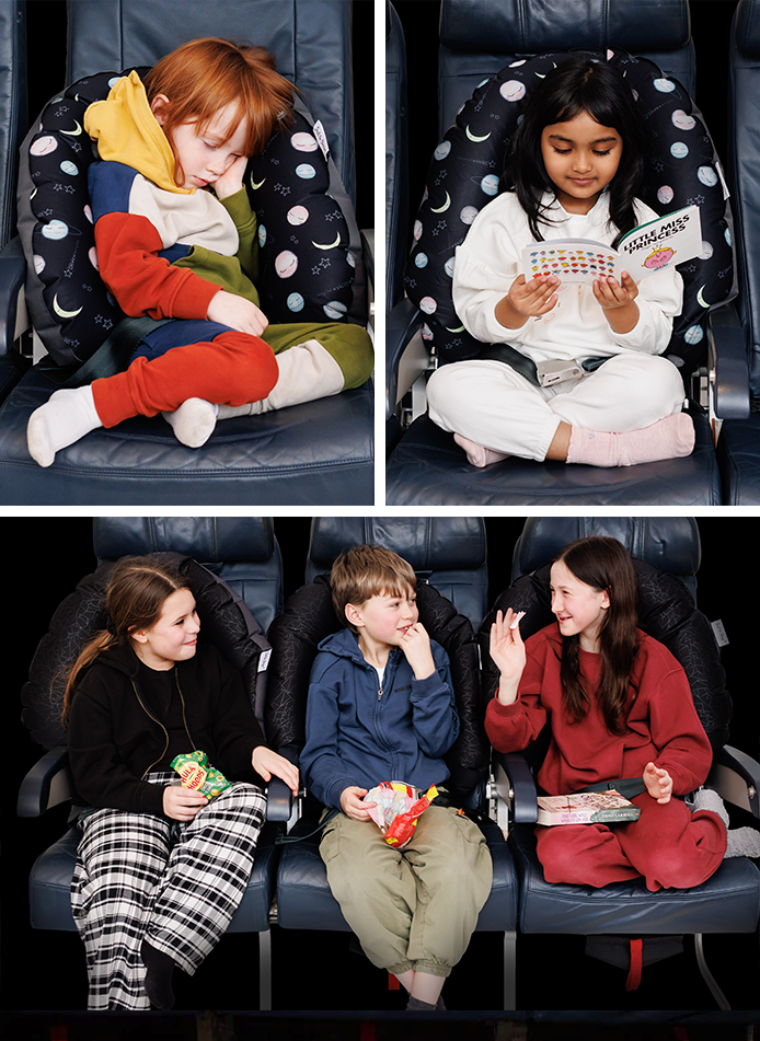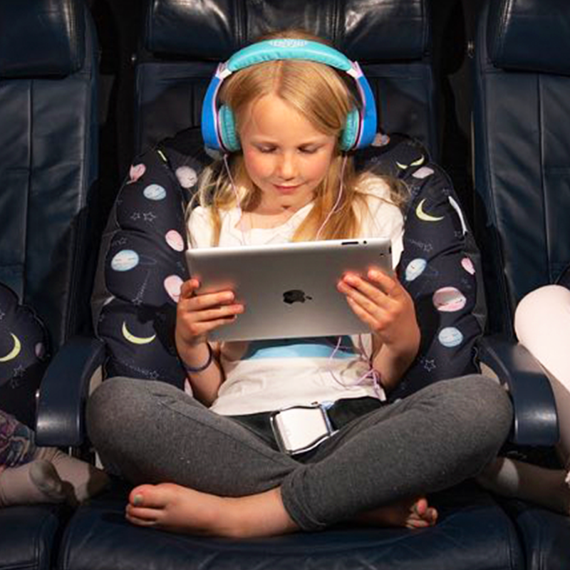 It’s an inflatable cushion that transforms plane seats into a comfortable, safe space for children and adults. Perfect for long-haul flights.